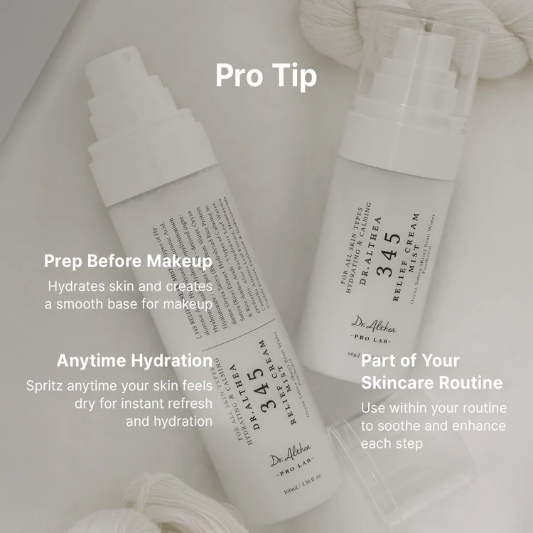The Dr. Althea 345 Relief Cream Mist is a premium 2-in-1 facial spray that combines the deep nourishment of a moisturizing cream with the lightweight feel of a refreshing essence. It is specifically designed to soothe and hydrate sensitive, dry, or irritated skin quickly.